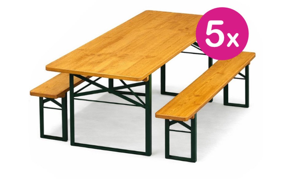 5x professionelle Bierzeltgarnitur mit 50 cm breiten Tischen
